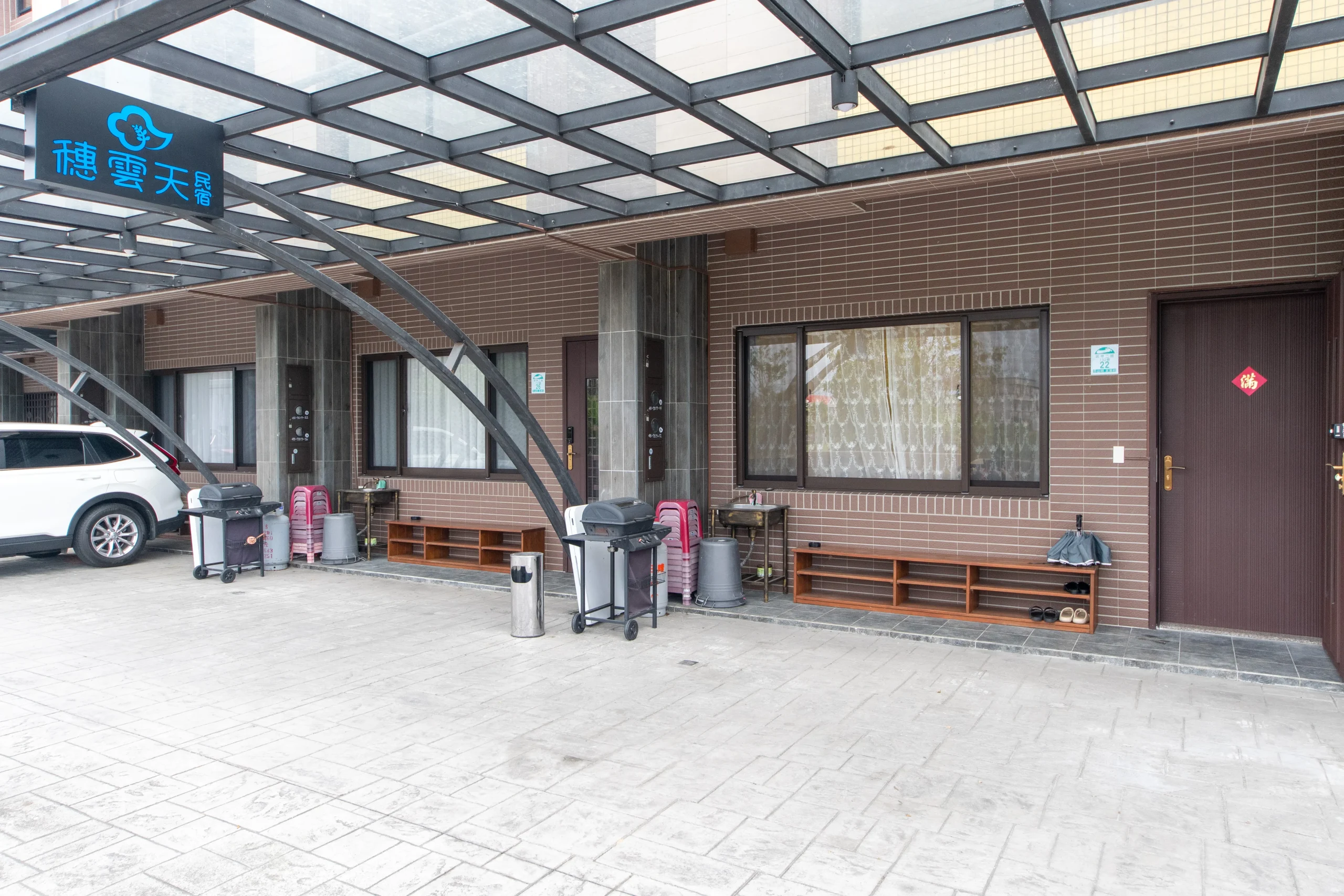 烤肉場地:民宿提供專門的烤肉區,讓客人可以在戶外享受美味的燒烤,增進親友間的互動。這裡的遮雨棚設計,讓您無論天氣如何都能安心烤肉。