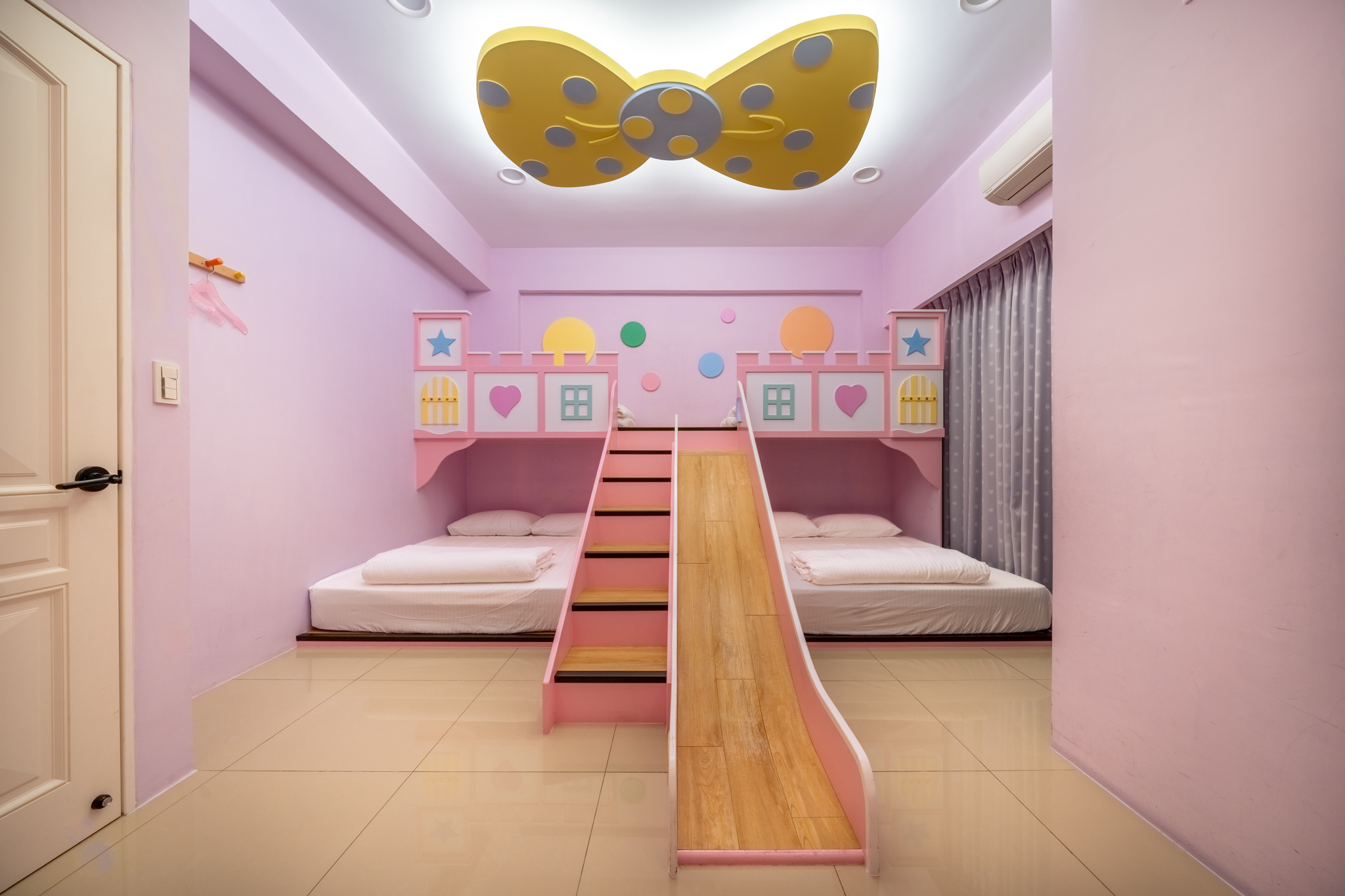親子溜滑梯房型的設計靈感主要來自於創造一個安全且充滿樂趣的環境,讓孩子們在住宿期間能夠享受玩耍的樂趣。我們這樣的設計不僅是考慮到小孩們娛樂需求,更希望能夠加強親子之間的互動和親密感。