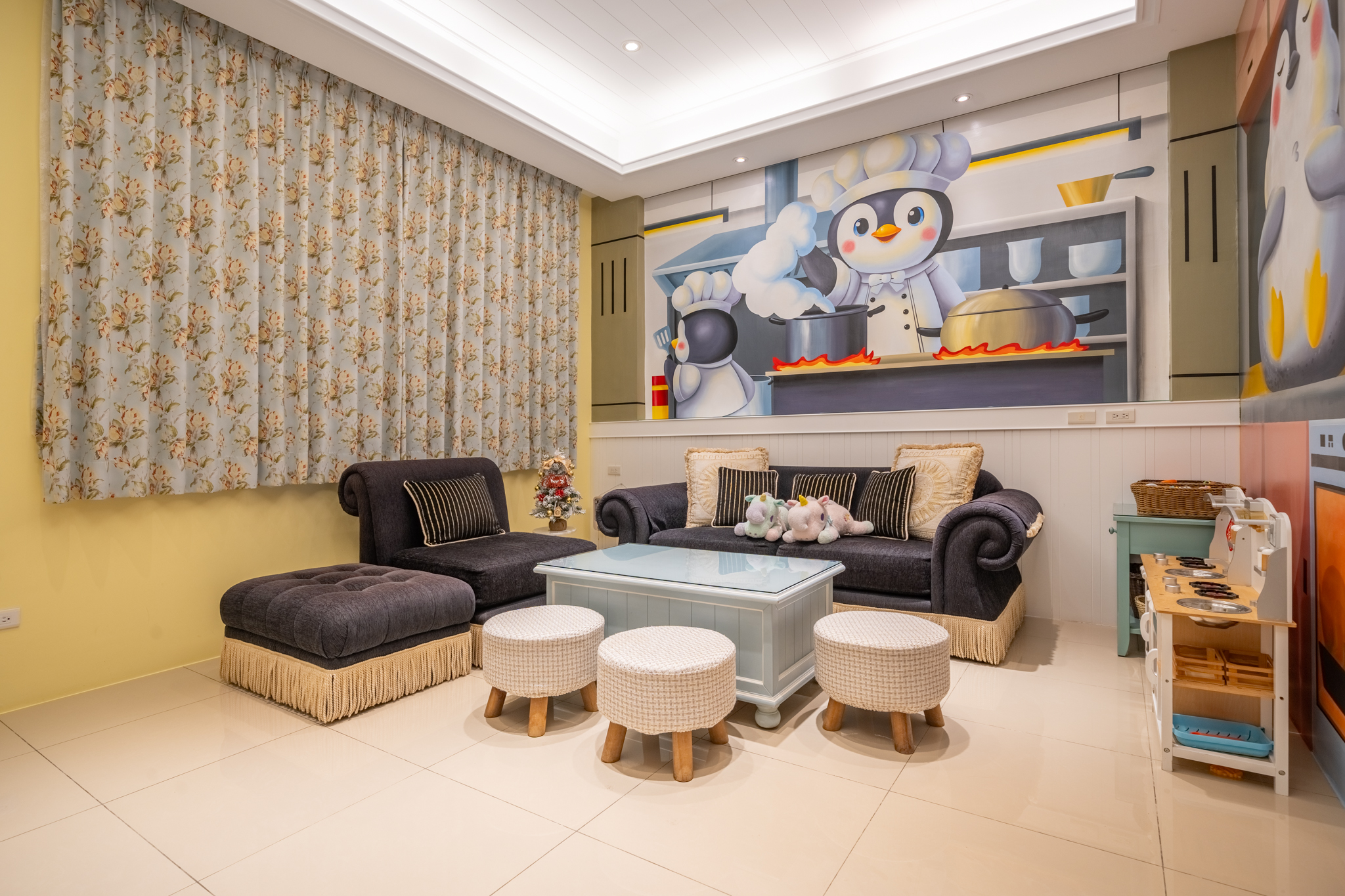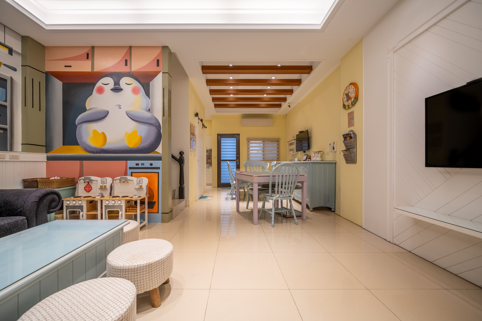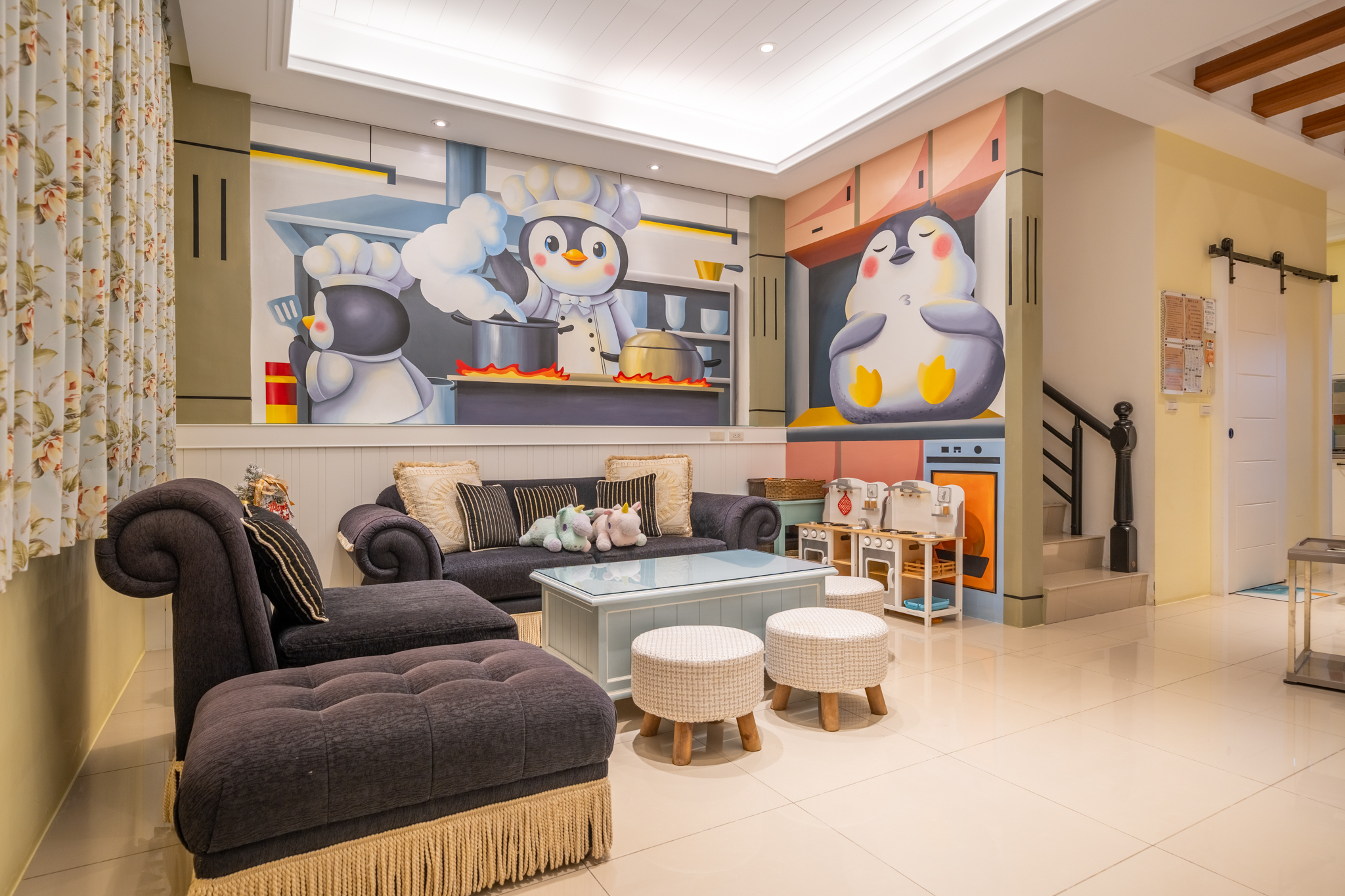 寬敞聚會大廳:這裡是客人交流和放鬆的理想場所,配備舒適的沙發和茶具,讓您可以隨時享用飲品,並與家人朋友分享美好時光。