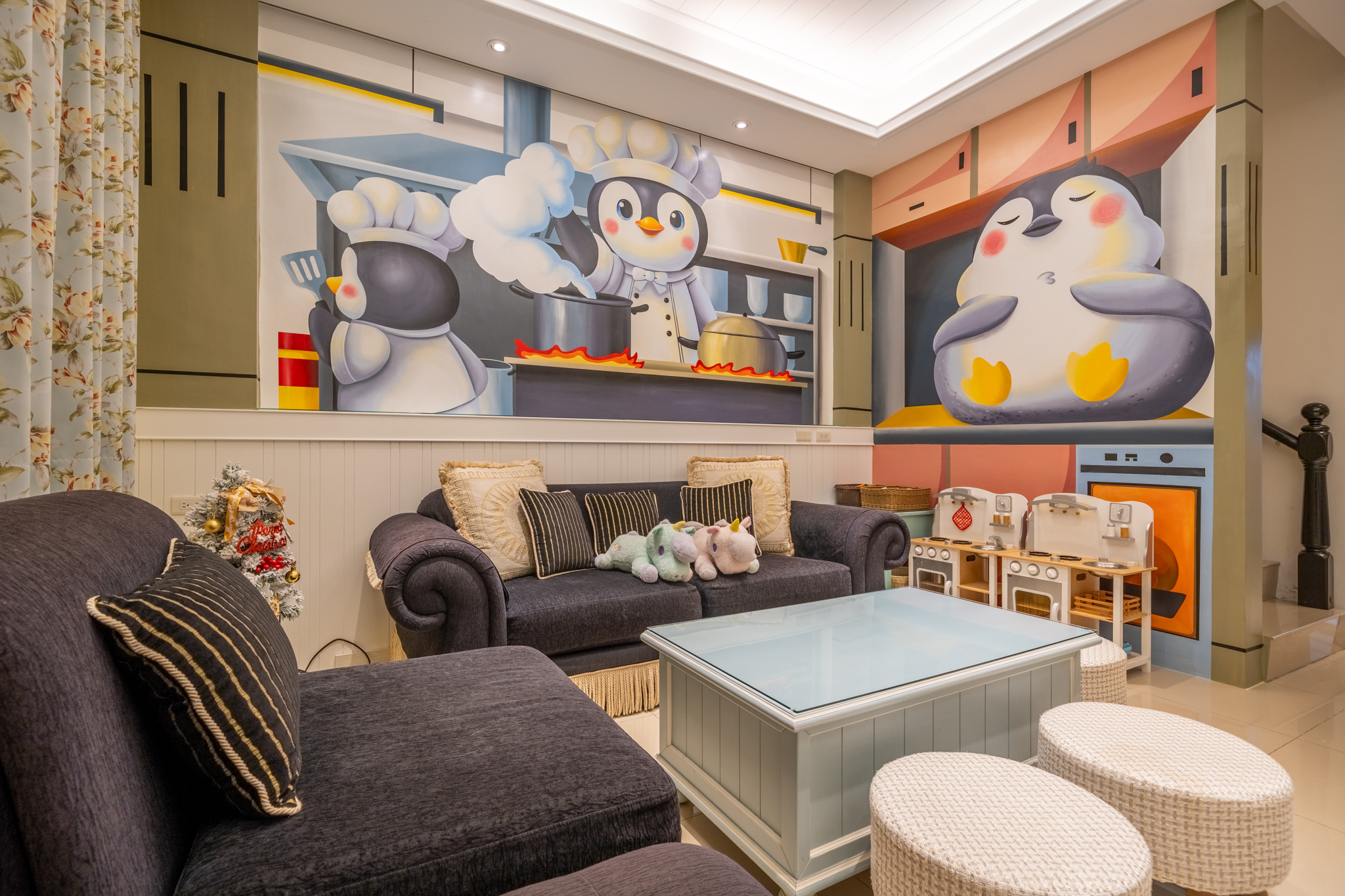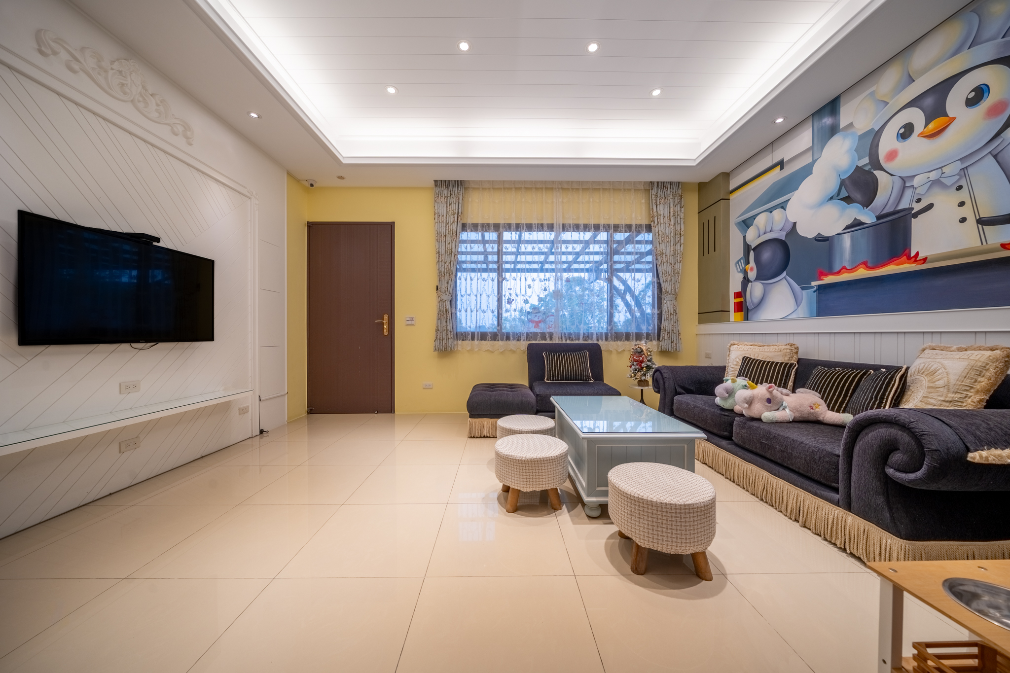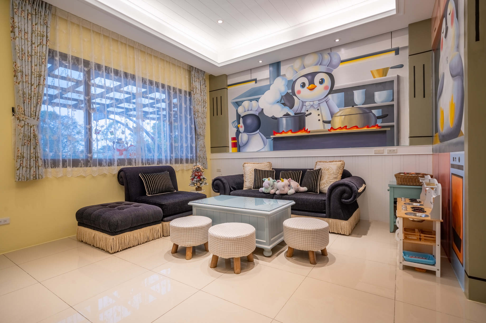 寬敞聚會大廳:這裡是客人交流和放鬆的理想場所,配備舒適的沙發和茶具,讓您可以隨時享用飲品,並與家人朋友分享美好時光。